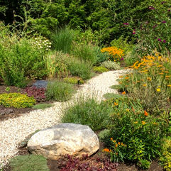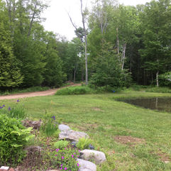 The Grange Road property was originally an expansive lawn and a small pond. I worked with the family and local volunteers to create a beautiful memorial garden. This small sanctuary was full of color and humming with life the very next season.